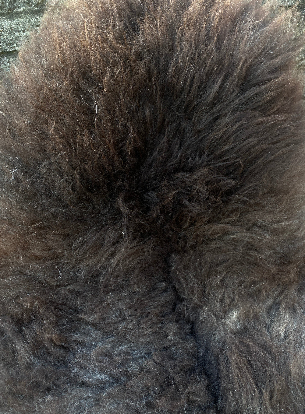 The wool is lovely and thick with a slightly shorter haired patch in the centre of the rug - this is the spine of the sheep that would have had the rain on it all year and so got flattened down. This is likely from a big old ram that's been in the fields many years.