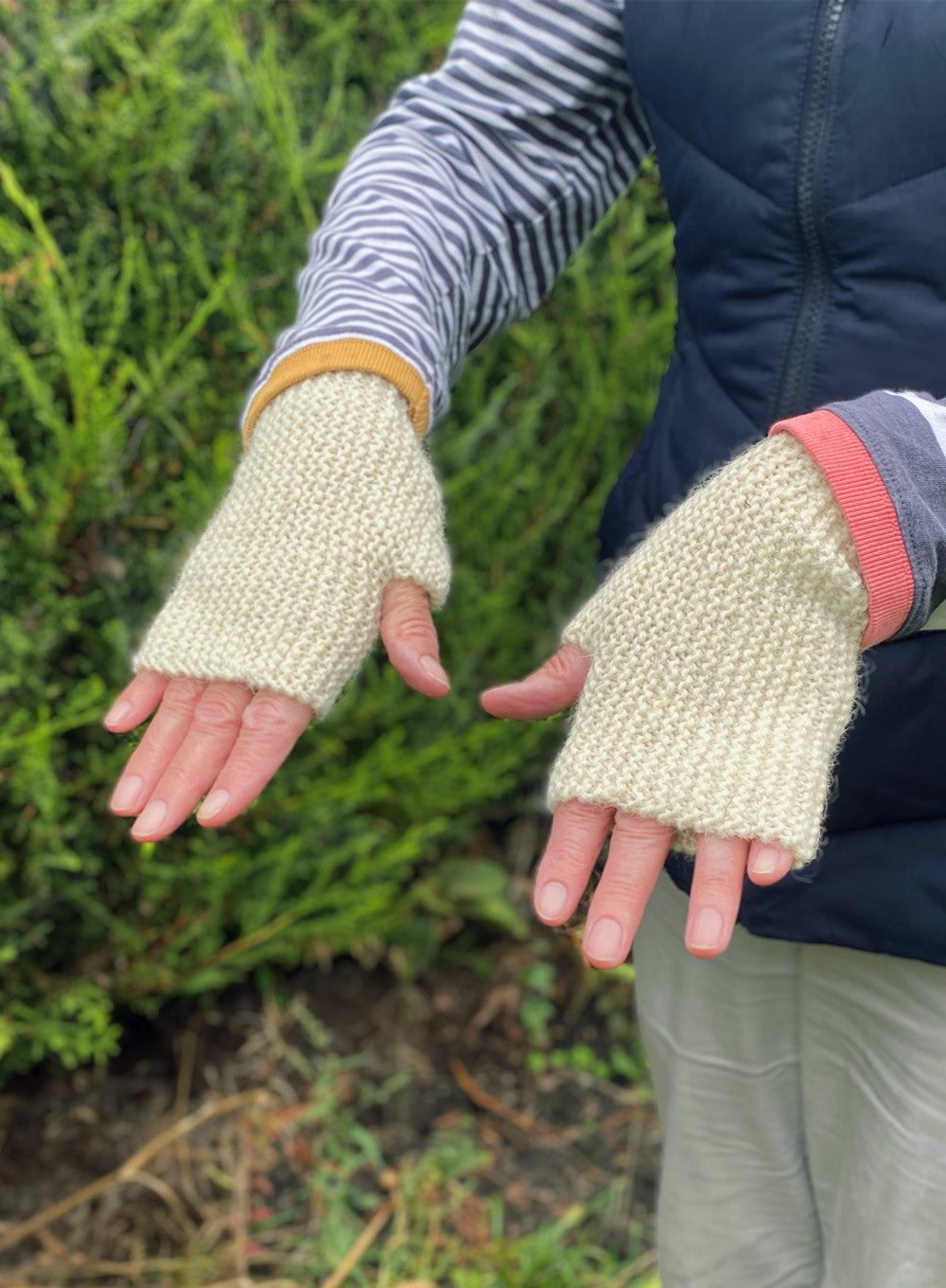 Knit your own pair of fingerless gloves from our traceable Clapdale Wool.